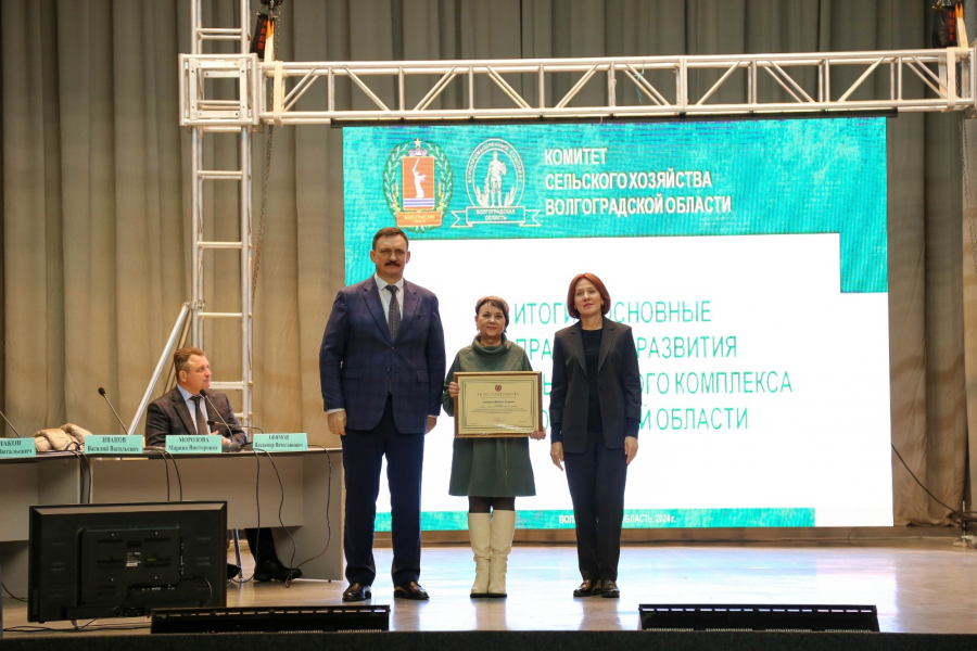 В ходе совещания почётная грамота Министерства сельского хозяйства была вручена ИП Ивану Пехтелеву, а директору ООО «Таловское» Татьяне Горбачёвой (на фото) – грамота губернатора Волгоградской области.