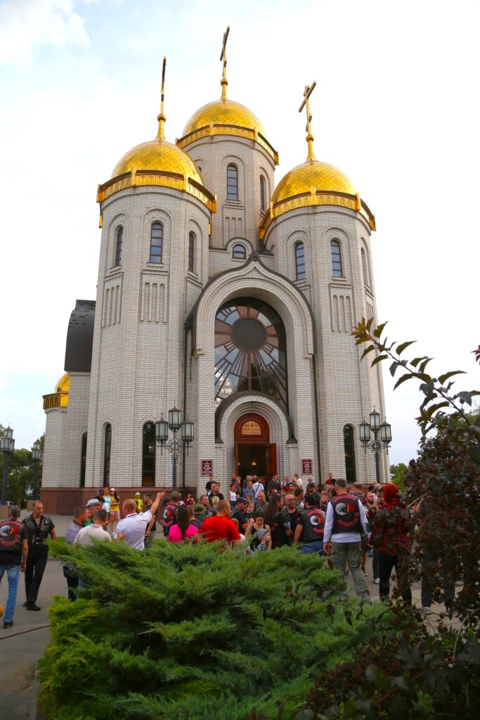 Участники Всероссийского мотоклуба «Ночные волки» посетили храм Всех святых на Мамаевом кургане