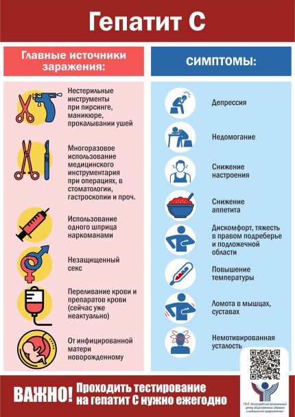 Клинические проявления этого заболевания не выражены. Зачастую человек может относить симптомы гепатита С к банальному переутомлению, простуде. Чувствуя снижение работоспособности, постоянную слабость и усталость, человек может и не подозревать, что в его организме размножается вирус. Прогрессирование ХГС может быть обусловлено множеством факторов злоупотребление алкоголем, наркомания, возраст больного, характер вируса (его генотип), сопутствующими заболеваниями.