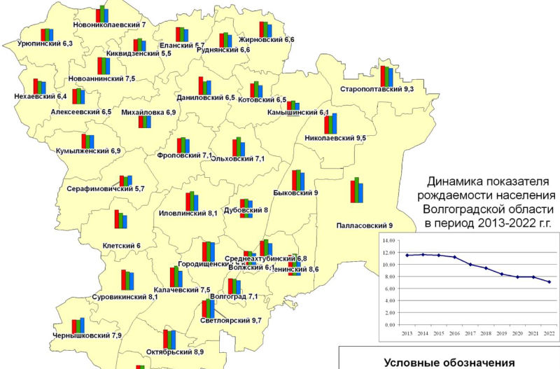 Управление Роспотребнадзора по Волгоградской области опубликовало «Медико-санитарный атлас Волгоградской области по данным СГМ за 2022 год». В аналитическом документе одним из важных показателей стала «Динамика рождаемости населения в 2013-2022 года».