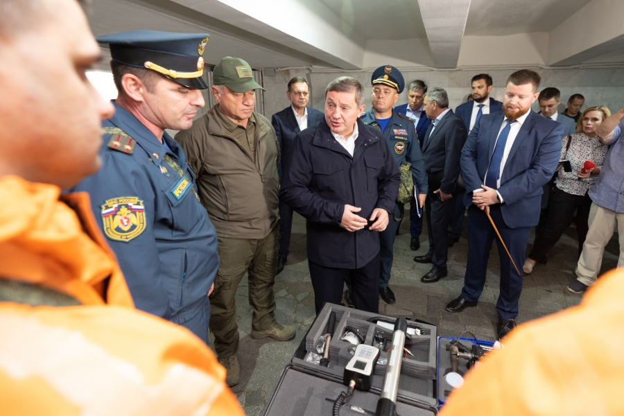 Глава региона осмотрел, как организована работа на подземных станциях скоростного трамвая, которые при возникновении ЧС переводятся в режим защитных сооружений. Было отмечено, что в проект модернизации метротрама, который сейчас реализуется, включено и решение вопросов обеспечения безопасности.