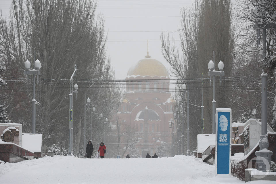 Фото: Дмитрий Рогулин / "Городские вести" Циклон «Ольга» принес в регион настоящую зиму со снегом, который волгоградцы давно не видели.