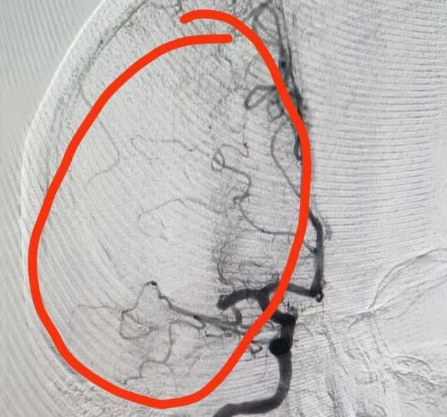 На машине скорой помощи её доставили в больницу, где врачи провели обследование и нашли причину плохого самочувствия женщины. У пациентки наблюдался тромбоз средней мозговой артерии справа.