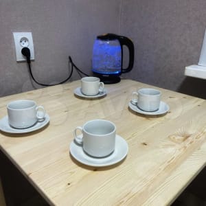 В квартире есть все необходимое для проживания (холодильник, телевизор, стиральная машина, микроволновая печь, утюг, портативная колонка Алиса, газовая плита, посуда для еды и приготовления пищи).
